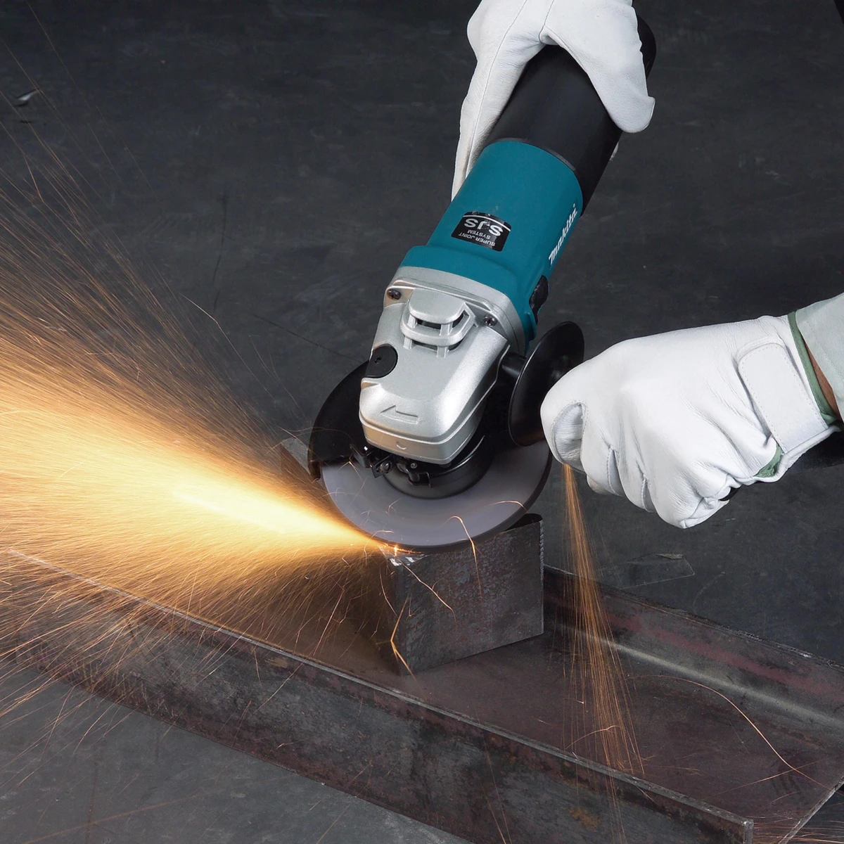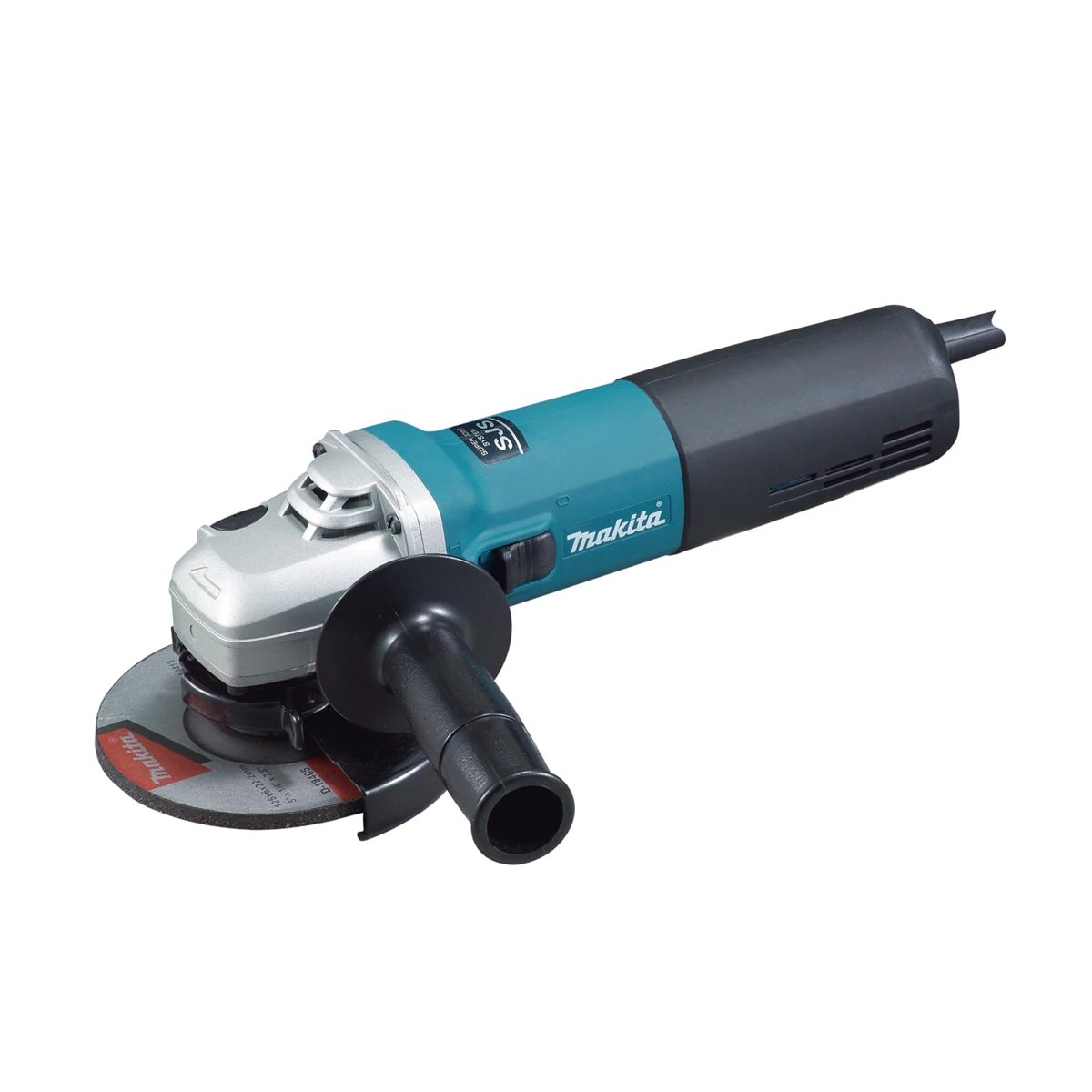 Mini amoladora Makita de 1 100 W y disco de 125 mm. Compacta y potente con sistema antivibración SJS II y arranque suave.