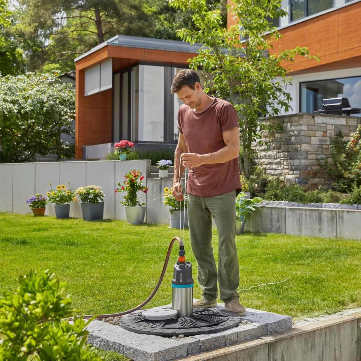 Bomba sumergible para aguas limpias con caudal de 9 000 L/h y profundidad de inmersión de 7 m.