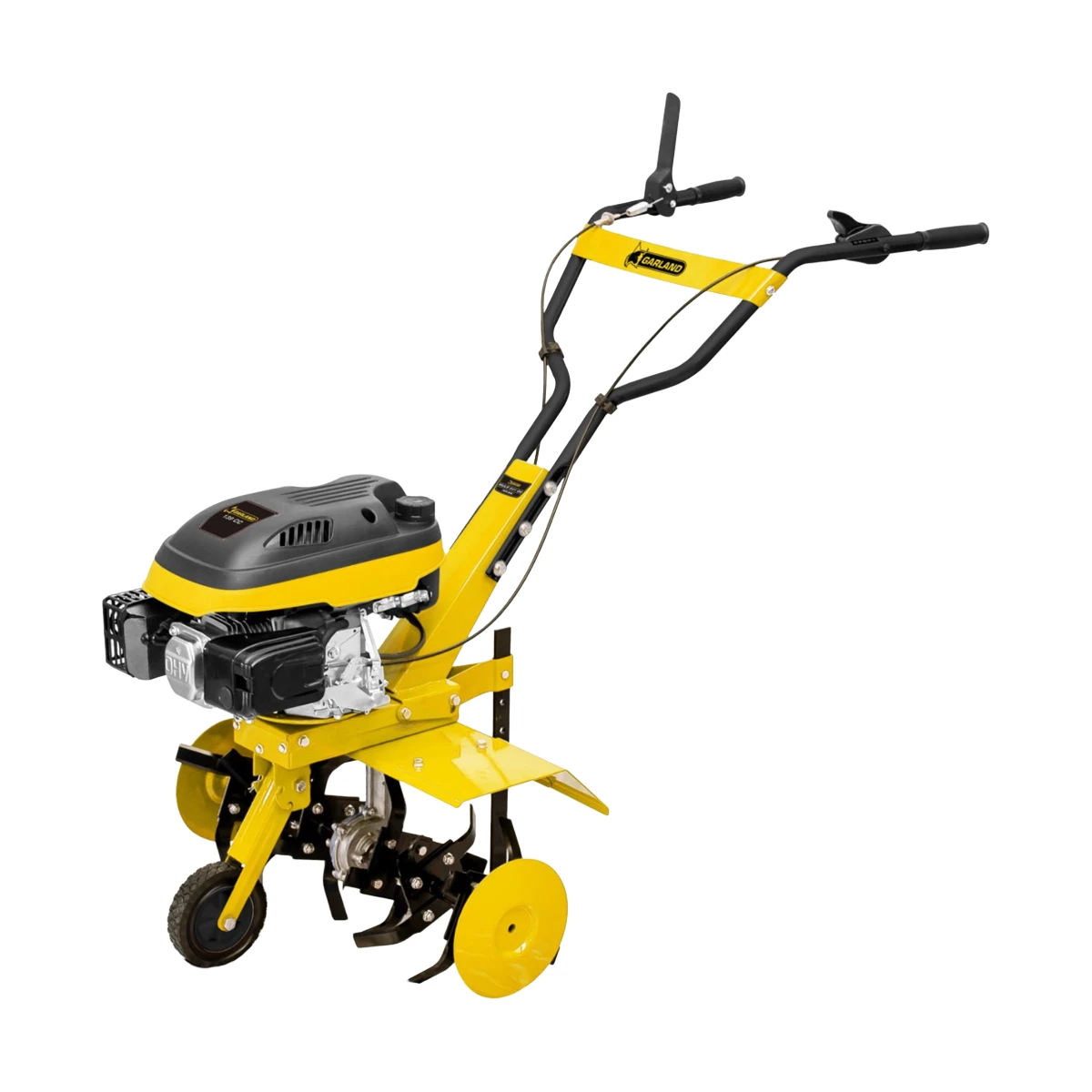 Motoazada de gasolina para arar y preparar huertos con ancho de trabajo regulable.