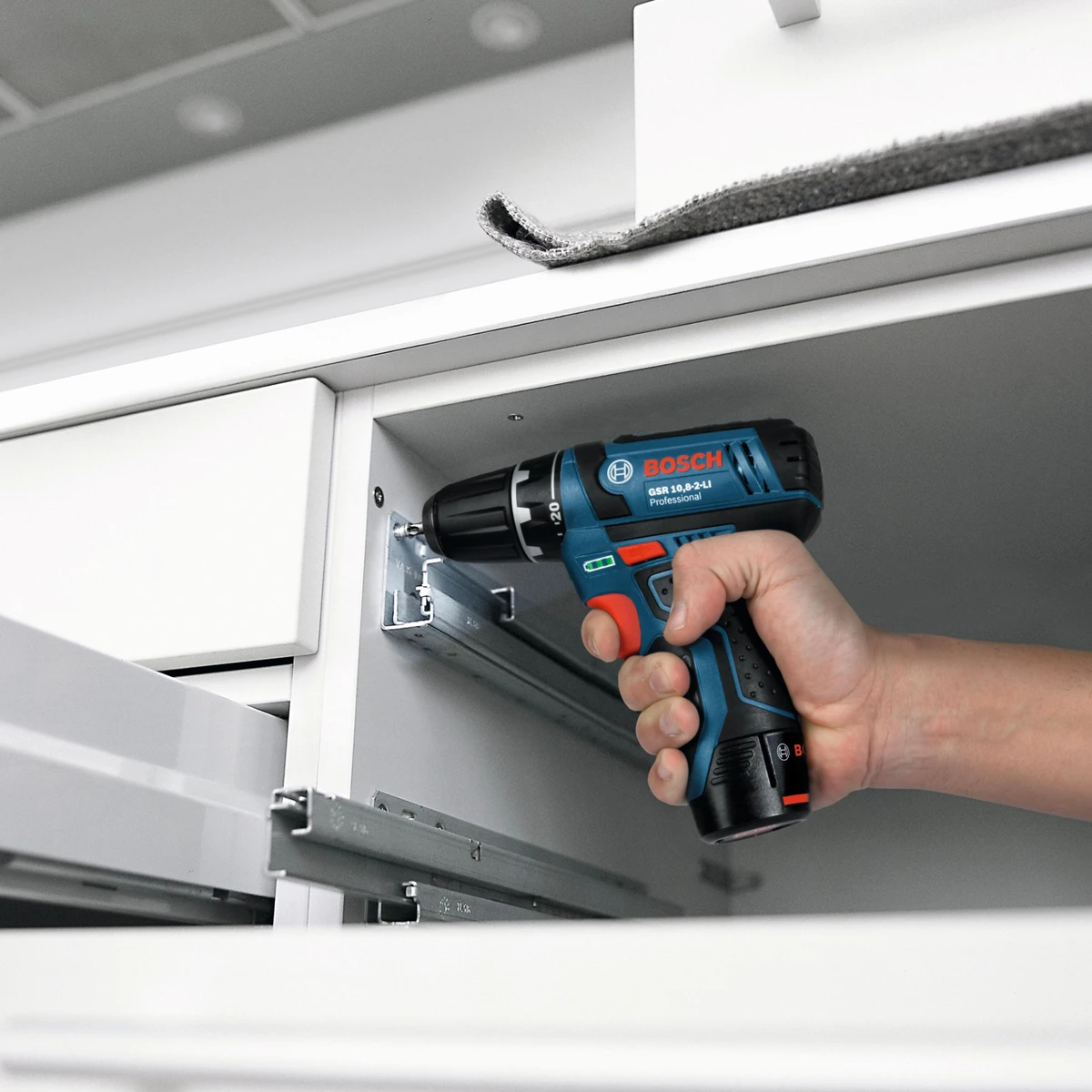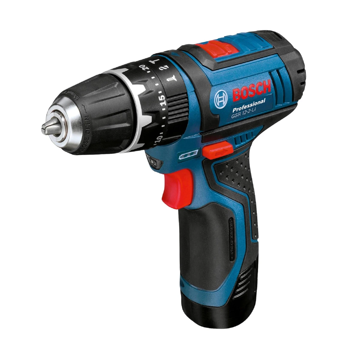 Taladro a batería Bosch de 12 V, compacto y ligero, con modo percutor y par máximo de 30 Nm. Ideal para montaje y bricolaje.